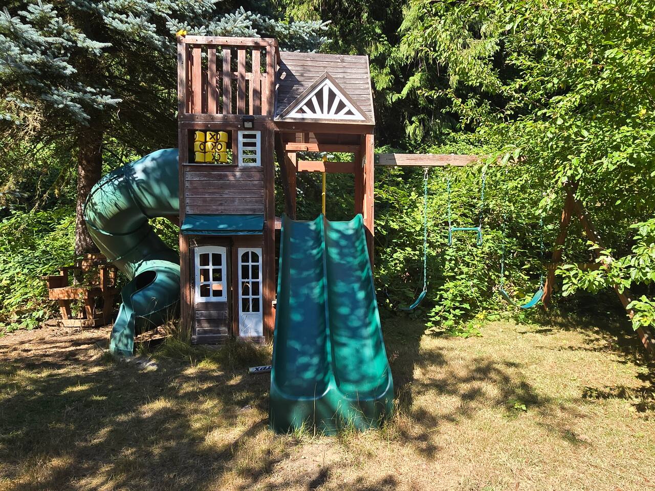 Guests have private use of the cabins. Several fun amenities and farm animals (gardens, pond, playhouse, hammock, bunnies, chickens, ducks, 2 friendly dogs, and soon goats) are on the main house side of the compound. Guests are welcome to ask the owners for a tour or to use the amenities.
