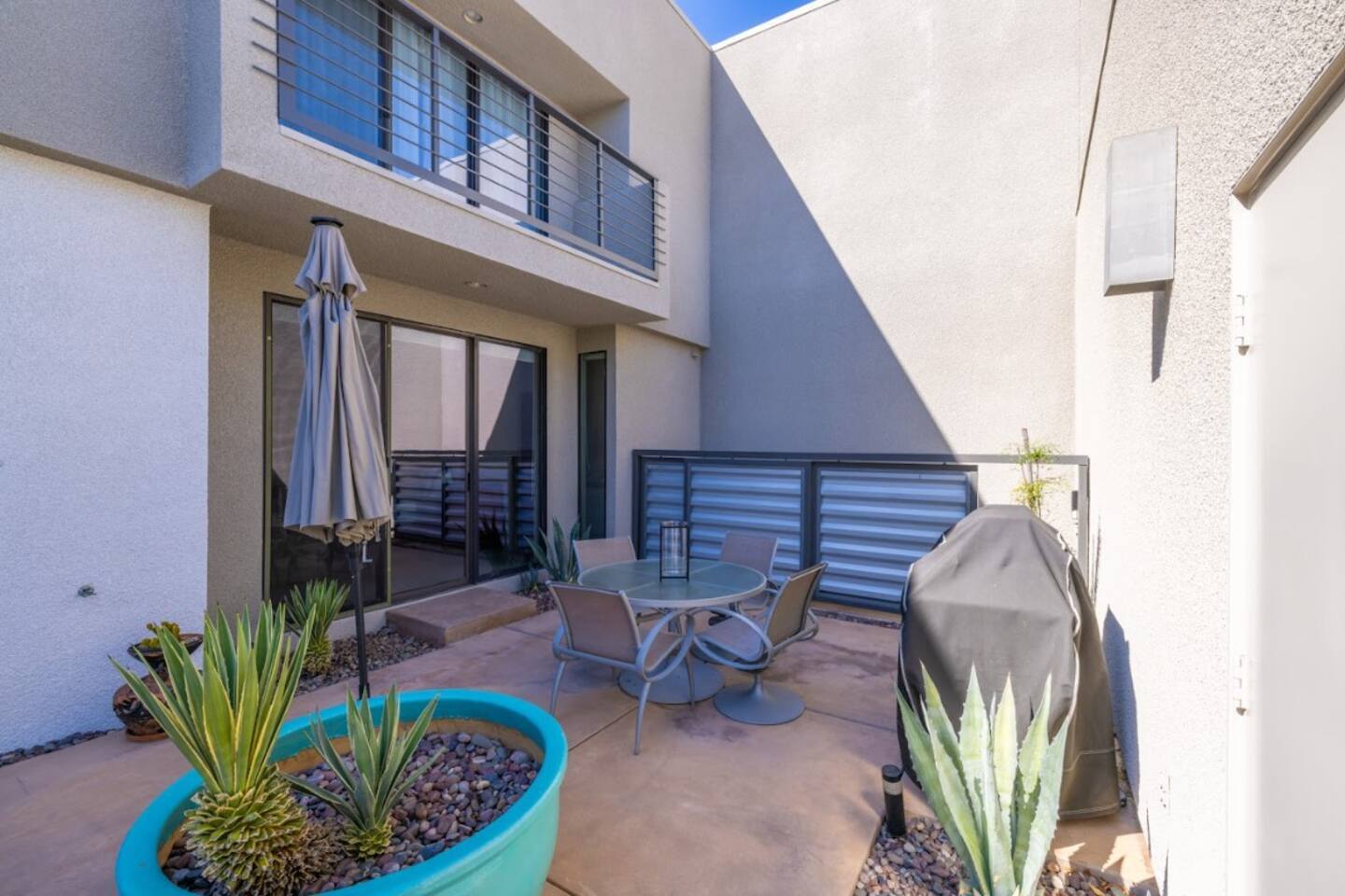 Welcome to a modern oasis in one of Palm Springs' premier gated communities! Enjoy soaring ceilings in the great room, a stylish kitchen, and a serene enclosed courtyard with a private heated pool and spa. The second floor features a Master Suite with a balcony and a Loft/Den. With high-speed Wi-Fi, you’re minutes from the Palm Springs Aerial Tramway, Desert Botanical Garden, Spa Resort Hotel & Casino, and shopping at Desert Hills Premium Outlet Mall. Experience the charm of The Living Desert!